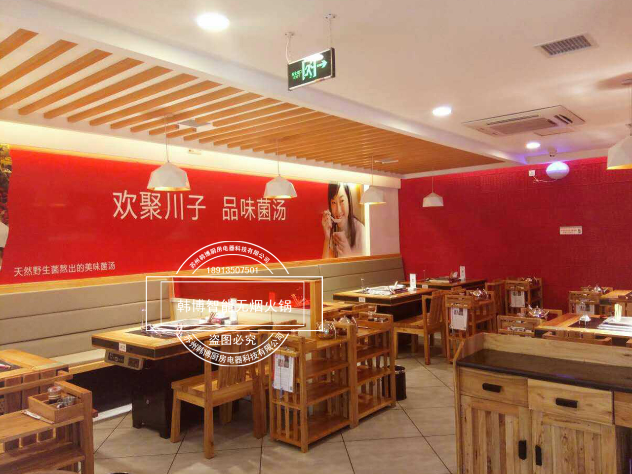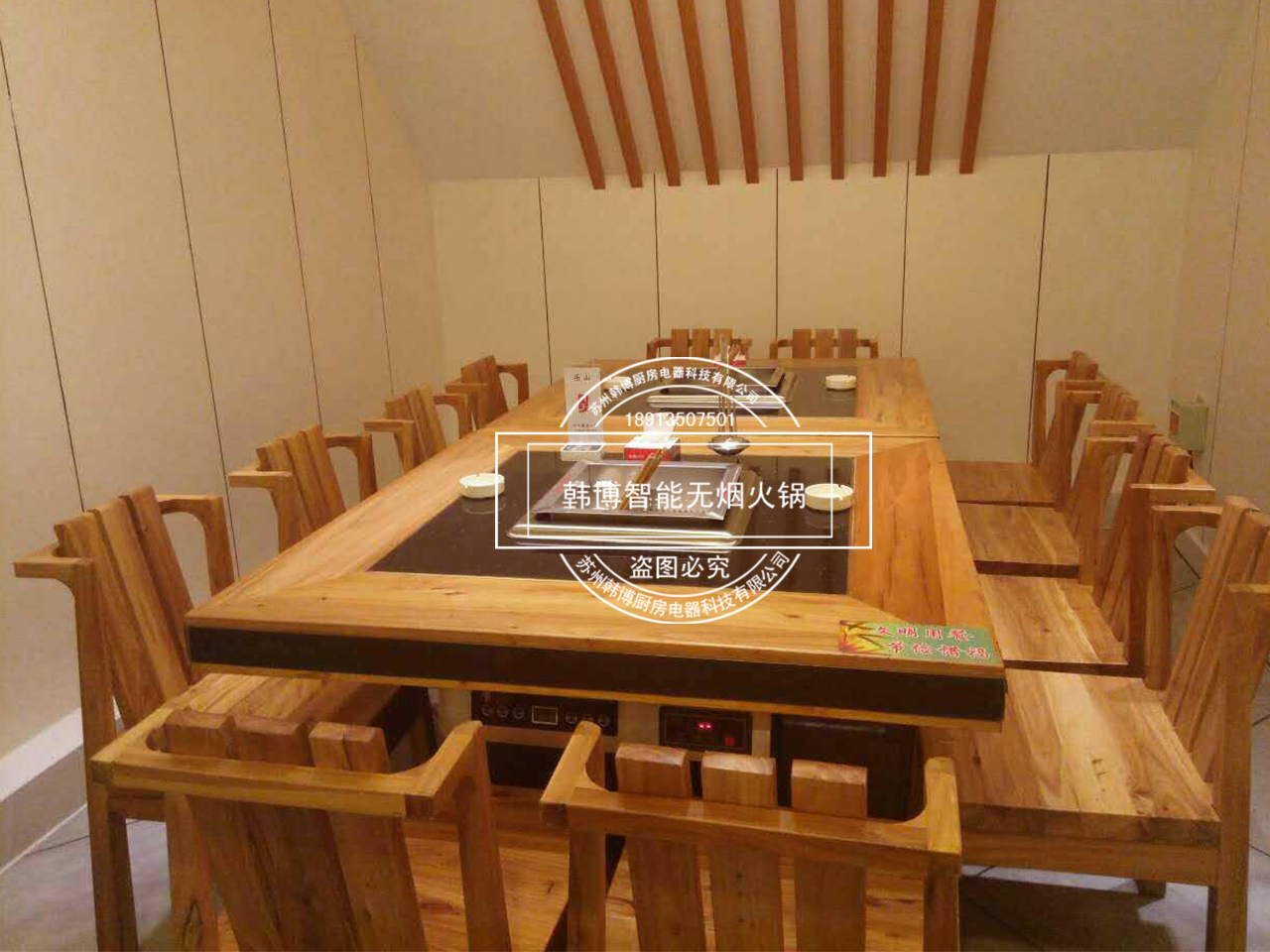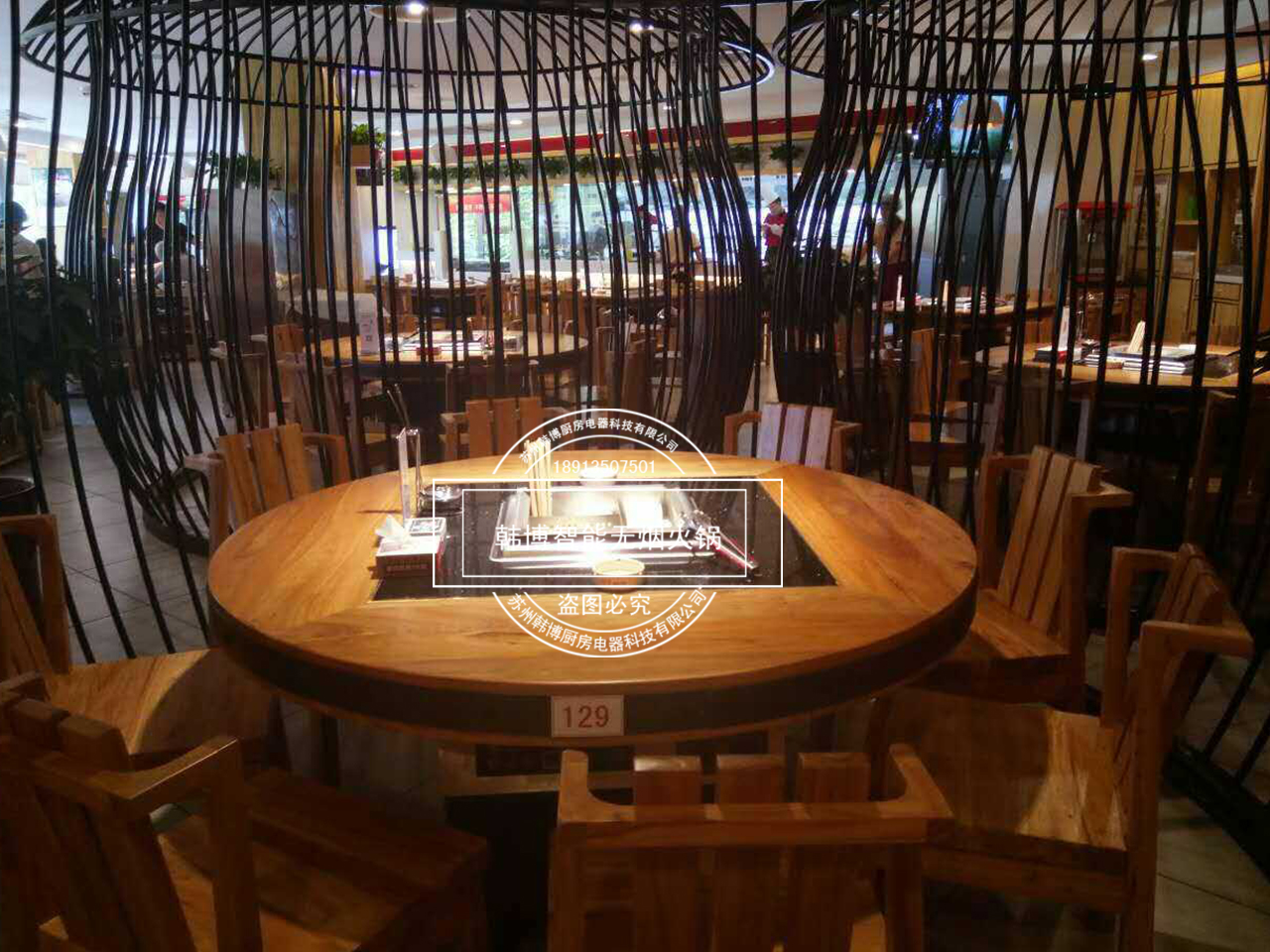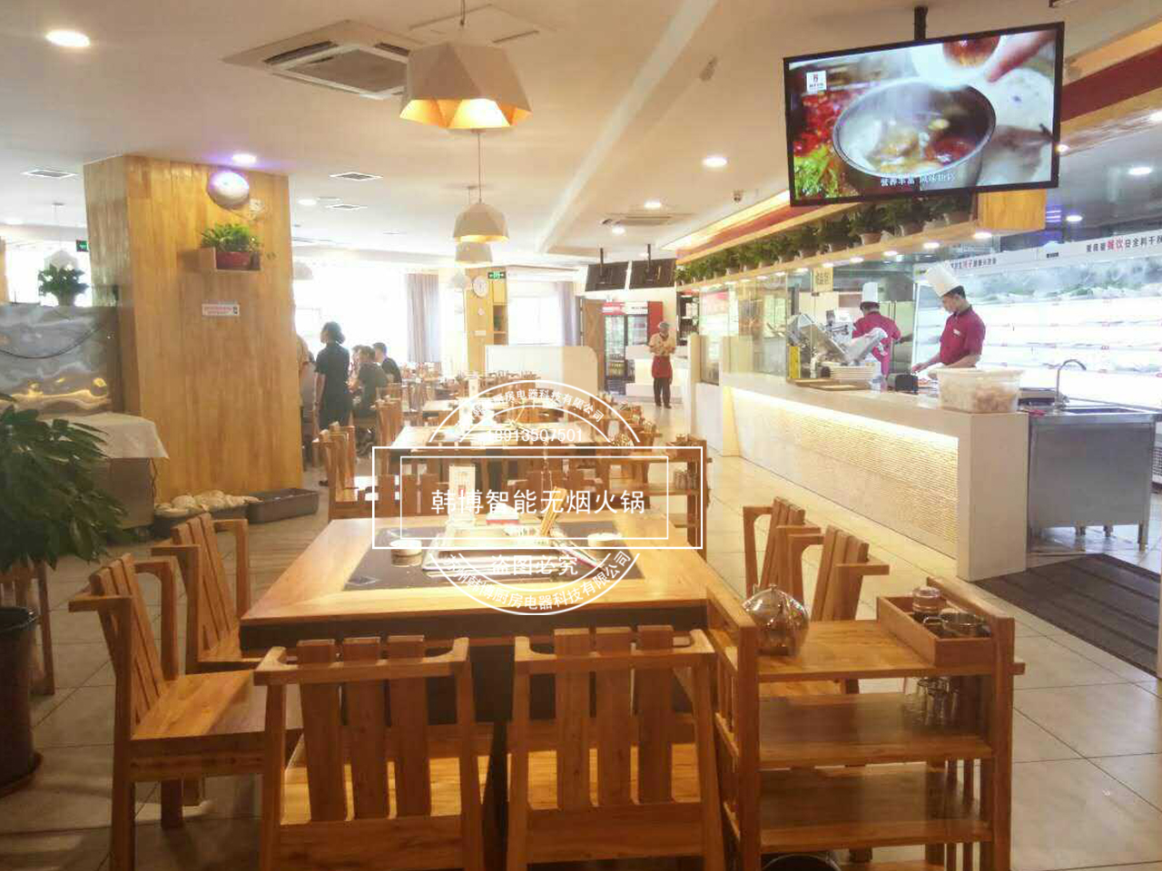 店內(nèi)特別之處就是老板從韓博定制的智能無煙火鍋凈化設(shè)備,安裝在了每張桌子下面,因?yàn)槲蜔熉蔬_(dá)到了99%,所以前來吃火鍋的顧客,再也不用擔(dān)心受到油煙味的困擾。