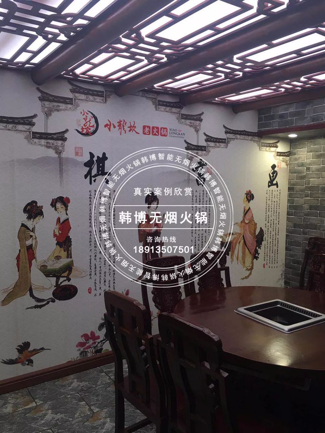 其店內裝修格調也是充滿濃濃的巴蜀風情。古色古香的裝潢別具一格、精致的雕花、招牌的紅燈籠;獨具川蜀韻味的雕梁畫棟,讓整個裝修格調充滿濃濃的巴蜀風情。再加上店老板特別從韓博定制了一批智能無煙火鍋和無煙火鍋凈化設備,安裝了在每張火鍋桌上。