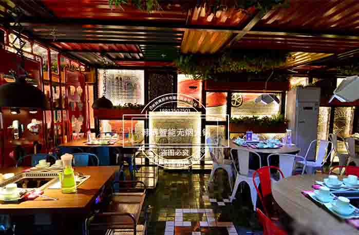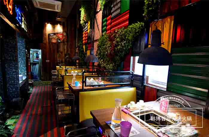 店內采用許多年輕元素,時尚活力涂鴉,餐廳處處充滿趣味格調和時尚新鮮感,給顧客營造一種輕松愉快的環境。在這吃火鍋你不用擔心油煙味,因為它選用了韓博智能無煙火鍋設備,節能、安全、高檔、環保,油煙去除率高達99%。